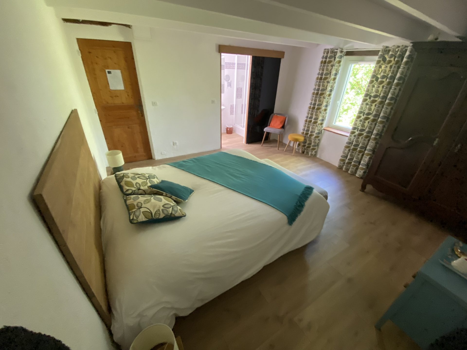 La Chambre d’Hôtes se situe en rez-de-chaussée de la maison annexe avec vue sur le parc avec accès à la piscine et au jacuzzi.